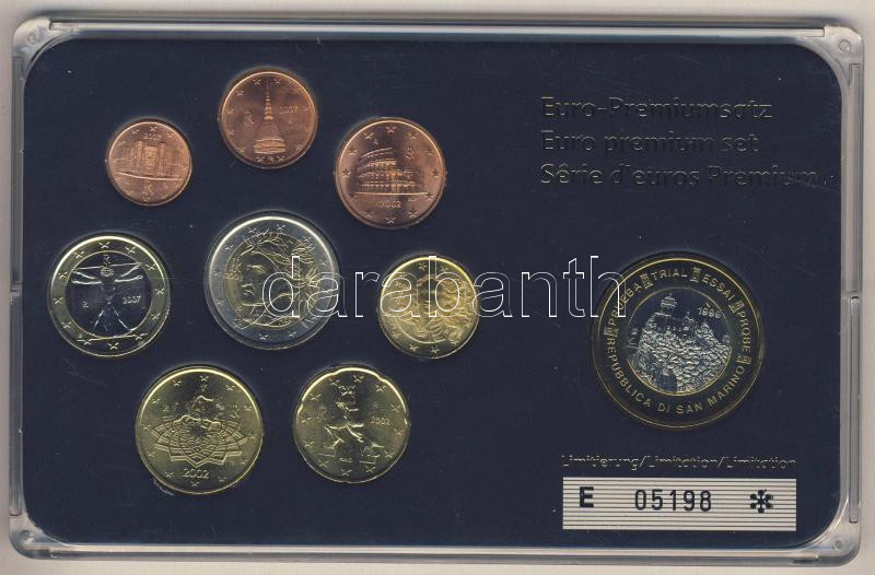 Olaszország 2002-2007. 1c-2€ 8klf db + San Marino 1999. 1€ próbaveret kereskedői szettben T:1 Limitált példányszám!