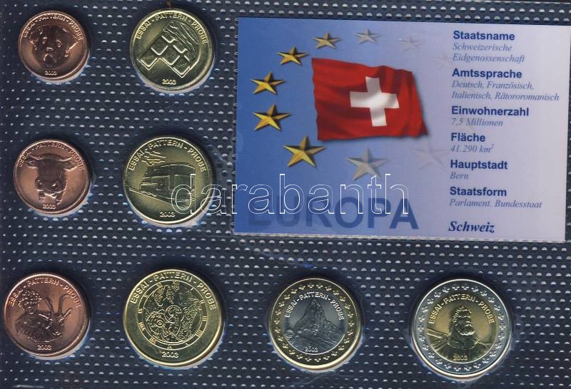 Svájc 2003. 1c,2c,5c,10c,20c,50c,1€,2€ próbaveretek, keres...