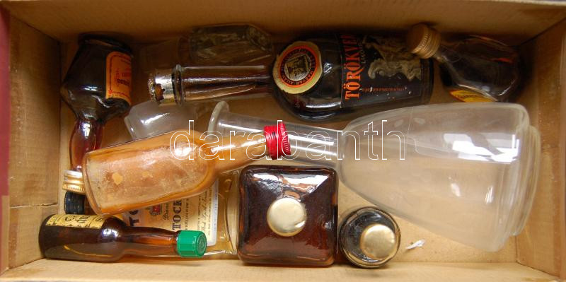 Régi alkoholos miniüveg gyűjtemény cipősdobozban
