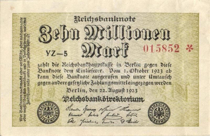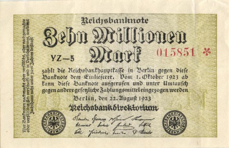 Német Birodalom / Weimari Köztársaság 1923. 10.000.000M (7x) közte kis ugrású ill. egymás utáni sorszámokkal T:I,I-,II