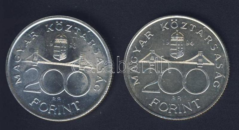 1993-94. 200Ft Ag "MNB" (1x) + "Deák" (1x) T:BU,2