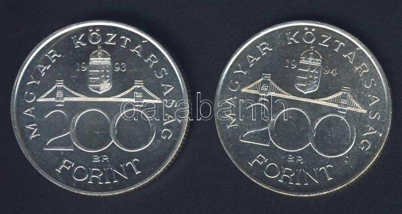1993-94. 200Ft Ag "MNB" (1x) + "Deák" (1x) T:BU,2