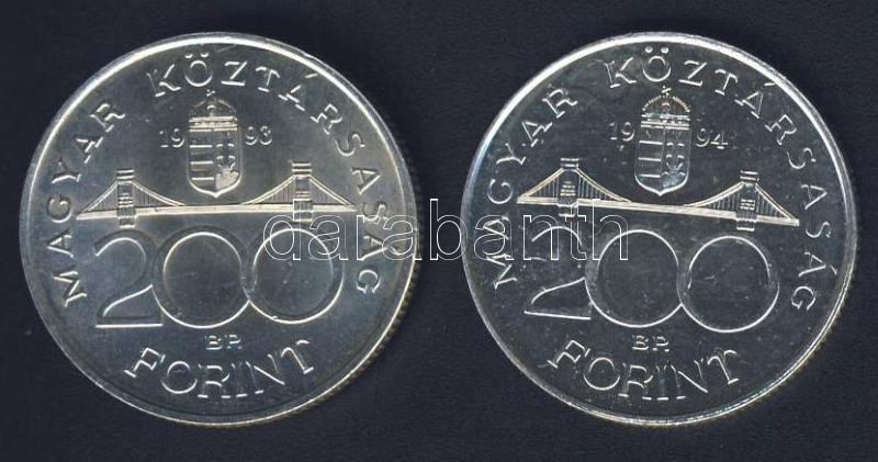 1993-94. 200Ft Ag "MNB" (1x) + "Deák" (1x) T:BU,2