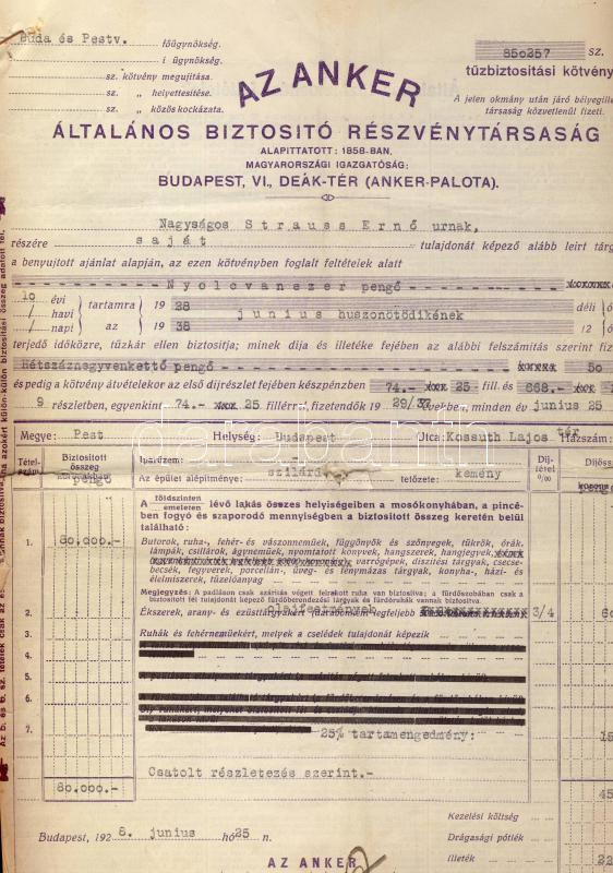 Az Anker Biztosító biztosítási kötvénye / Insurance bond