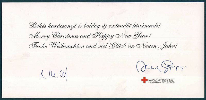 Habsburg György aláírása vöröskeresztes elnöki üdvözlőkártyáján