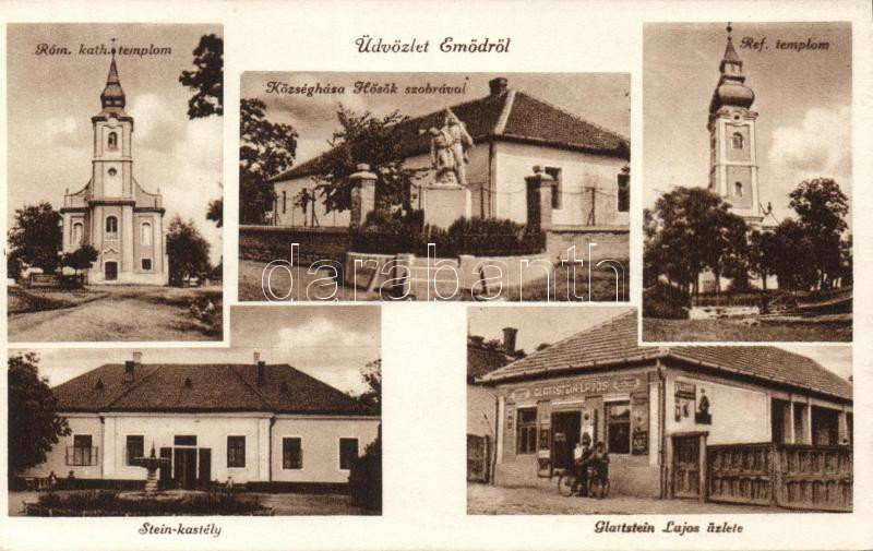 Emőd Hősök szobrával, Glattstein Lajos üzletével