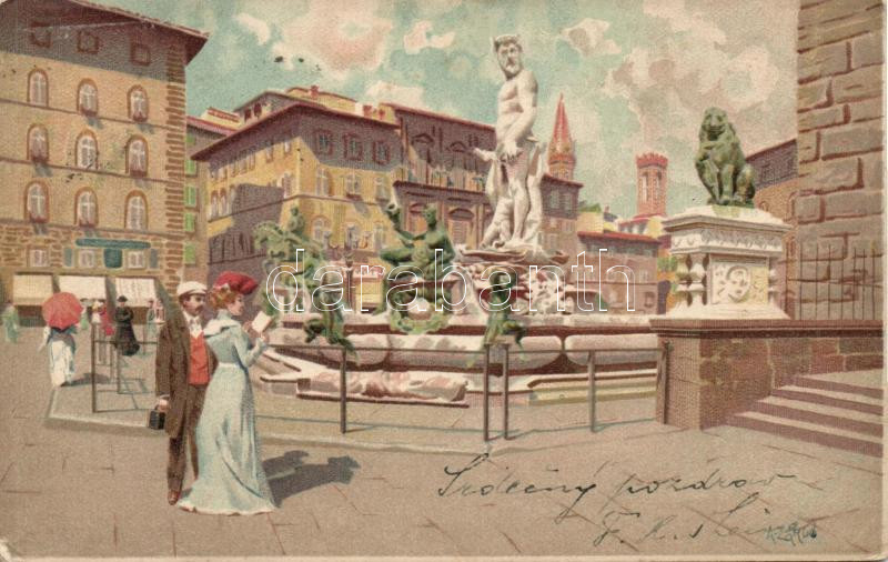 Firenze Fountain of Neptune litho s: A.Zardo (EB)