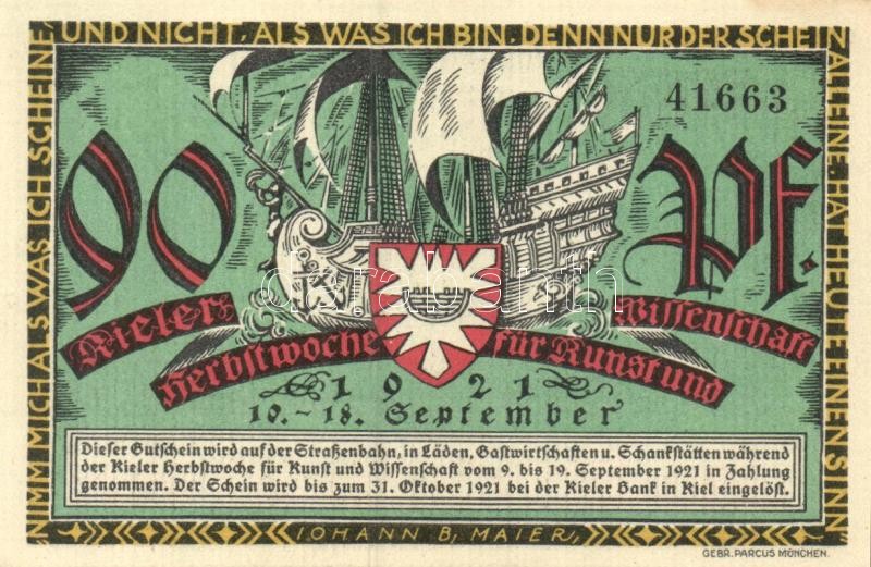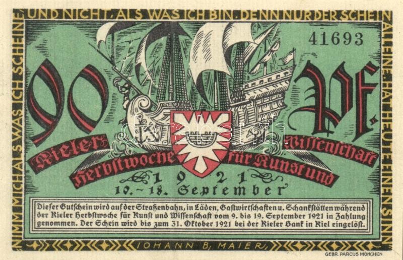 Német Birodalom / Weimari Köztársaság / Kiel 1921. 70Pf (2x) + 80Pf (2x) + 90Pf (2x) 6 klf db, teljes sor T:I