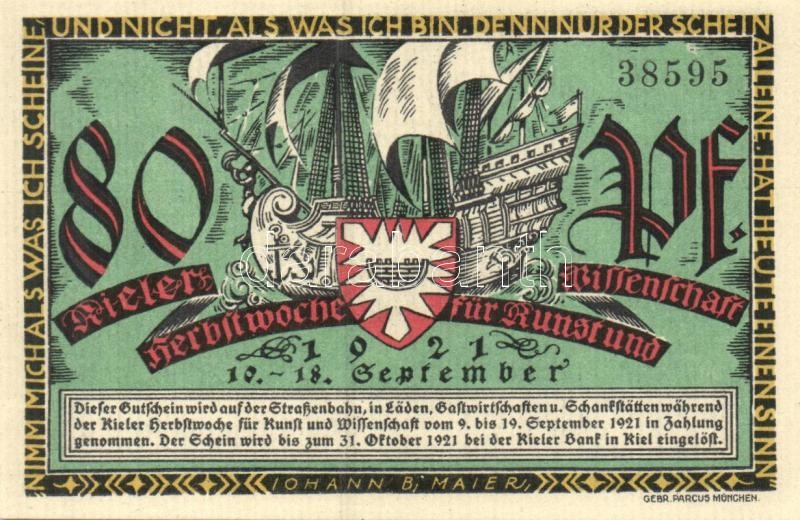 Német Birodalom / Weimari Köztársaság / Kiel 1921. 70Pf (2x) + 80Pf (2...
