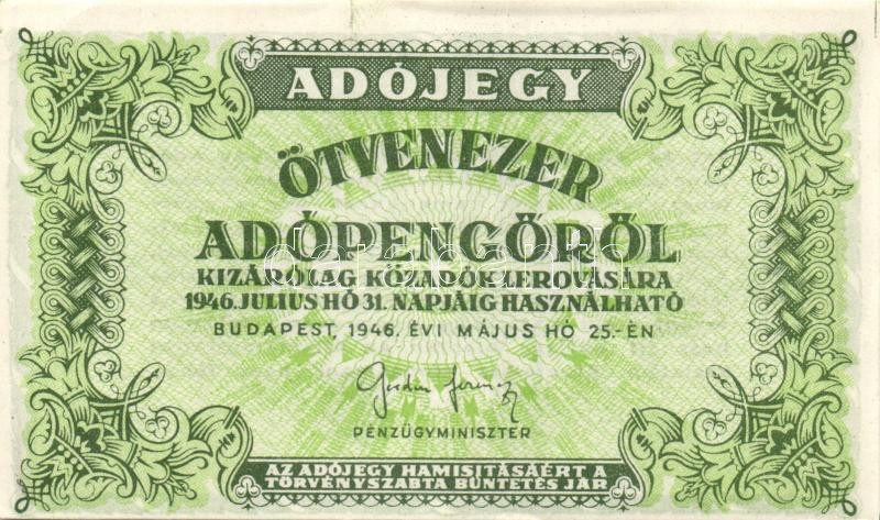 1946. 50.000AP jobb felső sarokban gyári vízjel részlete! Alapnyomat kissé lefelé csúszva! T:I R!