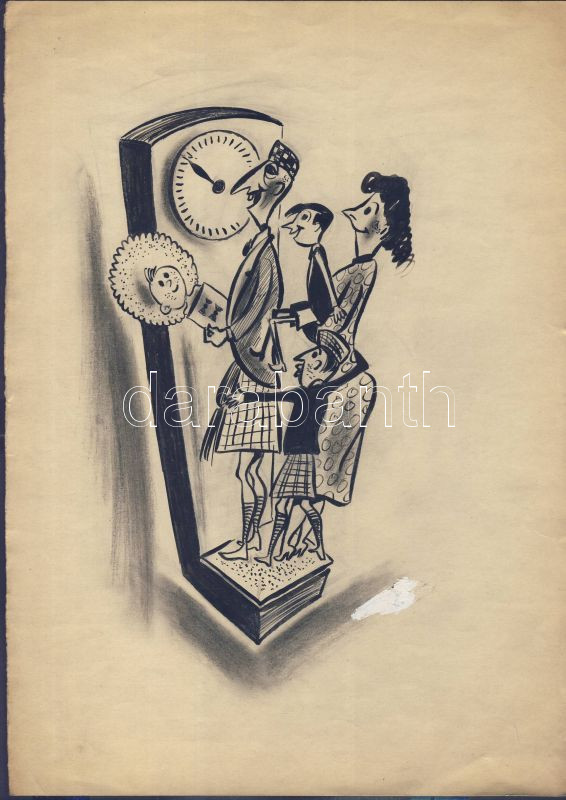 Ruszkay György (1924-1998): Skót család, tus-papír, 21x30 cm
