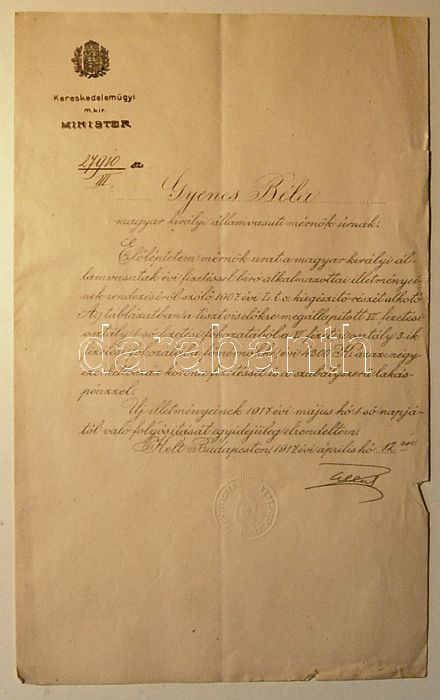 https://www.darabanth.com/en/119-Online-auction/119.0/Other-collectibles/~40113/1917-Harkanyi-Janos-kereskedelemugyi-miniszter-alairasa-kinevezesi-okiraton~II236402