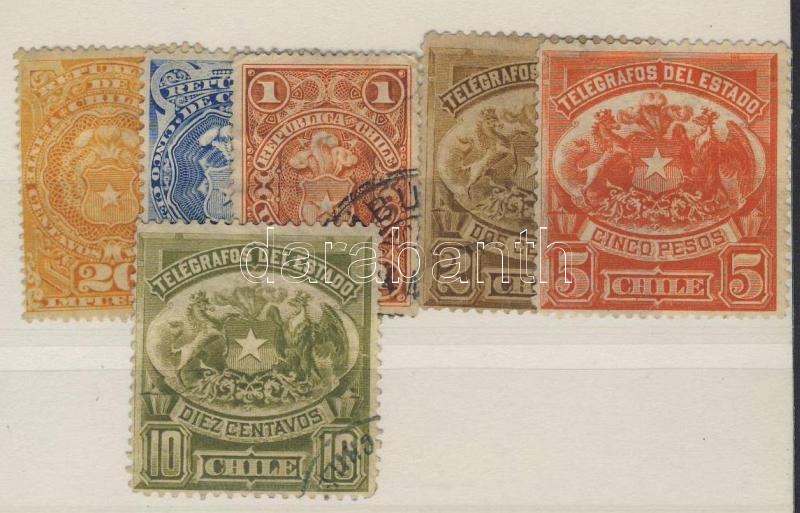 Chile 1880 körül 6 db okmány- és távirda bélyeg