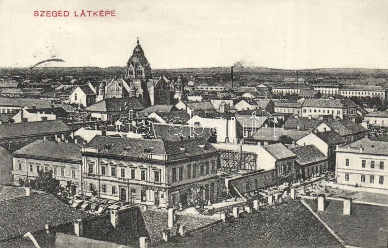 Szeged a Zsinagógával és a Szegedi Gőzmalom irodájával