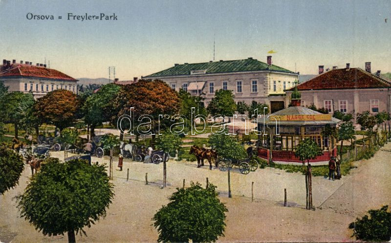 Orsova Freyler park with the pavilion of Ede Nasse and carts
