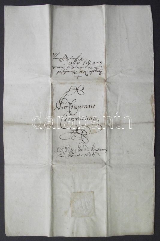1687 A kecskeméti ferences szerzetes Gerard páter által jegyzett levél... https://www.darabanth.com/en/12-Major-auction/12.1/Hungarian-philately-and-postal-history/Philatelic-and-historic-documents-manuscripts-autographs-1546-1980~3330/1687-A-kecskemeti-ferences-szerzetes-Gerard-pater-altal-jegyzett-level-Kormocbanyai-varosi-t~II409310