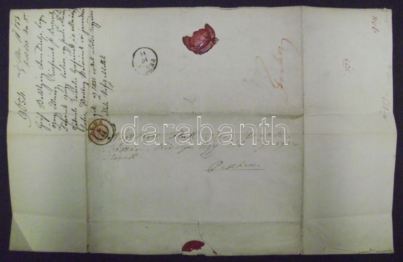 1853 gróf Batthyány Imre főispán saját kézzel írt és aláírt levele a királyi ügy igazgatónak az Almásy Józsefnének és rokonainak kifizetett járandóságok ügyében 4kr bélyeggel "ALBA" - Pesth / autograph letter of bailiff duke Imre Batthyány to the main royal administrator 4kr "ALBA" - Pesth
