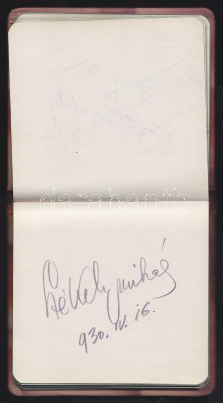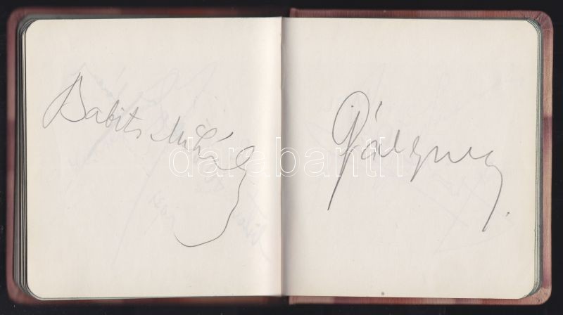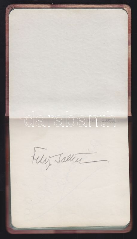 cca 1931 Autogram-füzet számos magyar és világhíresség aláírásával. Összesen 98 db aláírás többek között Székely Mihály, Svéd Sándor, Aage Madelung, a Nobel-díjas John Galsworthy, Jules Romain, Elinor Glyn, Pekár Gyula, Vízvári Mariska és sokan mások / Autpgraph-book with signatures of 98 world-famous and Hungarian celebrities in nice booklet