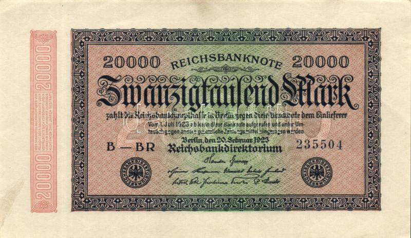 Német Birodalom / Weimari Köztársaság 1923. 20.000M (2x) variáns "...