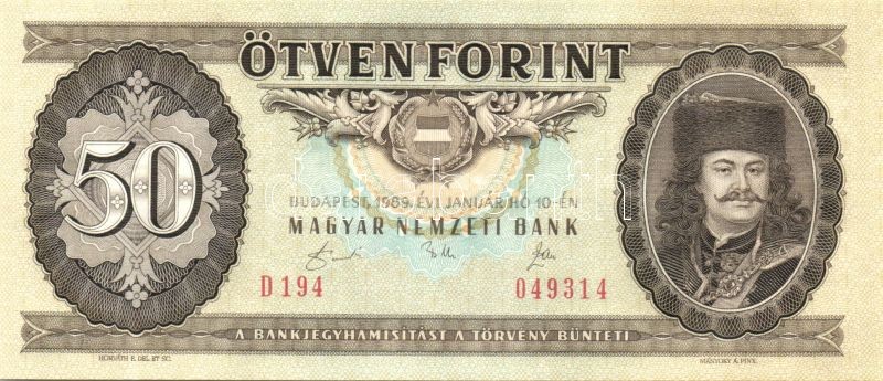1989. 50Ft (3x) egymásutáni sorszámmal T:I