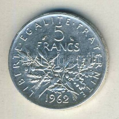https://www.darabanth.com/en/120-Online-auction/120.0/Numismatics/~30266/Franciaorszag-1962-5Fr-Ag-T2-ph~II325369