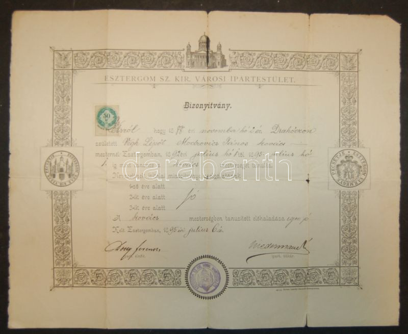 https://www.darabanth.com/en/120-Online-auction/120.0/Other-collectibles/~367/1895-Az-esztergomi-ipartestulet-kovacsmesteri-bizonyitvanya-hajtasoknal-itt-ott-szakadt~II323837