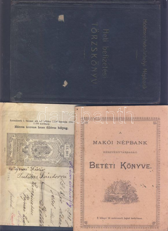 ~1910 Makói népbank betétkönyv és hódmezővásárhelyi népbank befizetési...
