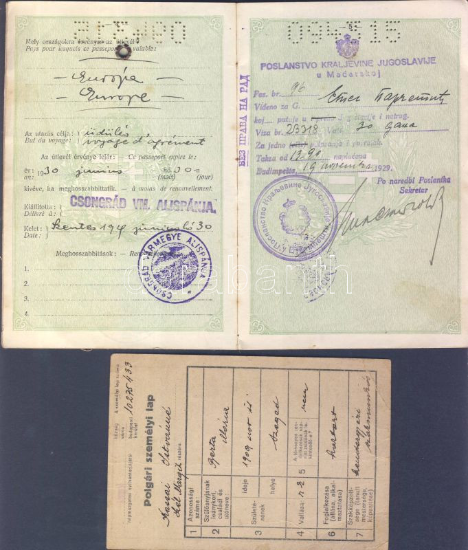 ~1930 Magyar Királyság Útlevél és egy Polgári személyi lap 1942-ből