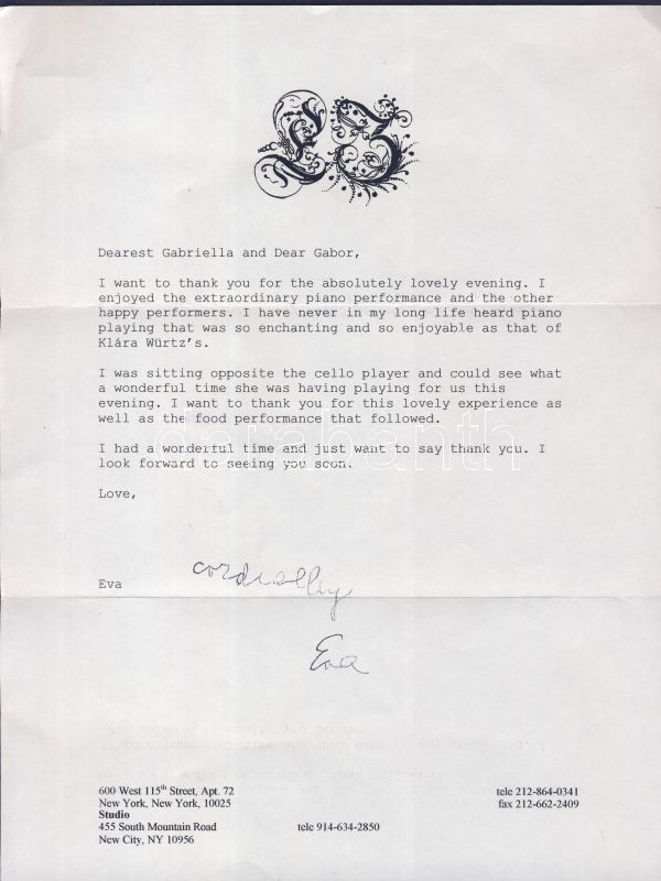 Eva Zeisel magyar származású new yorki keramikus aláírása üdvözlő levé...