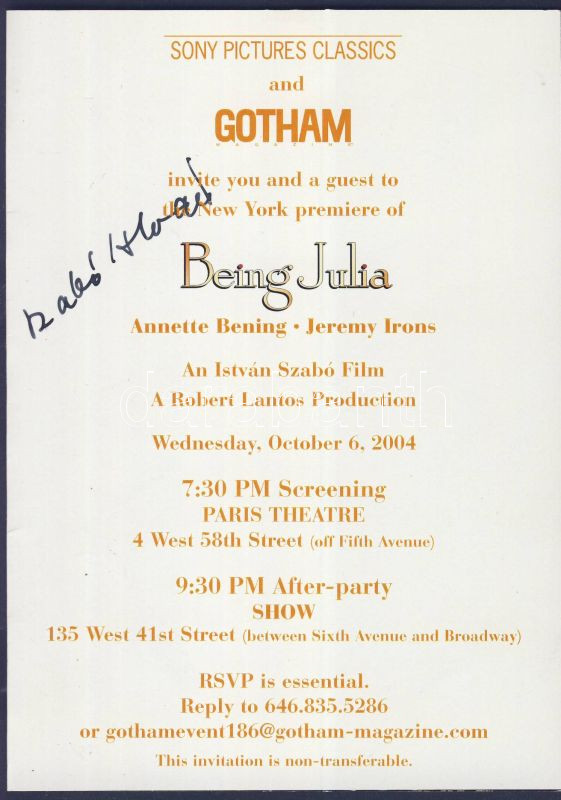 https://www.darabanth.com/en/120-Online-auction/120.0/Other-collectibles/~374/Szabo-Istvan-filmrendezo-alarasa-a-Csodalatos-Julia-c-film-new-yorki-osbemutatojanak-prosp~II325538