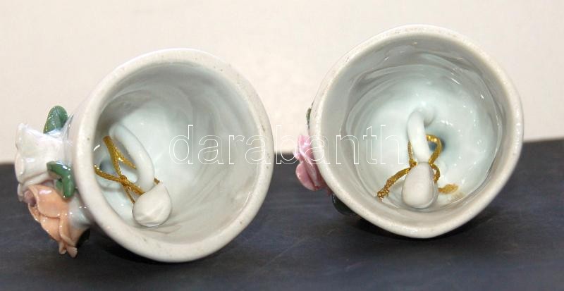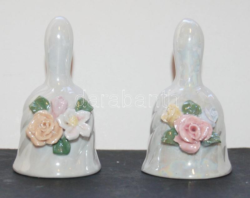 2db jelzés nélküli virágdomborműves kis porcelán harang (8cm magasak) ...