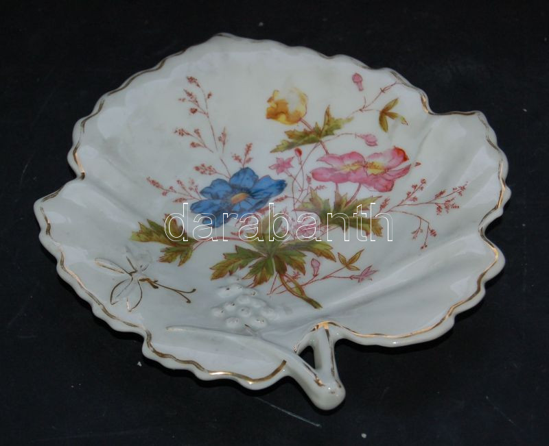 cca 1880 Fischer Ignác (Herendi) porcelán tál levél alakú / Antique Herend (Fischer I.) chinaware plate 20 cm