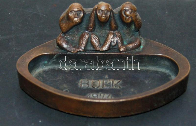 1974 BUÉK feliratú réz hamutartó a Három Bölcs Majom szobrával díszítv...