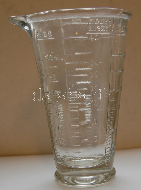 Régi, vastag üvegfalú mérőedény különféle élelmiszerek mérésére szolgá...
