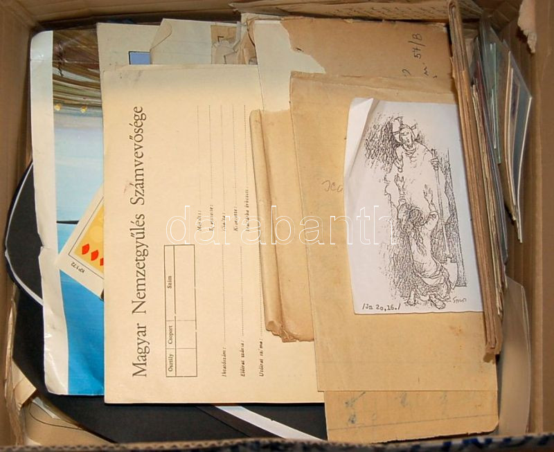 Több száz darabos XIX-XX. századi átnézetlen magyar és külföldi nyomtatvány, hivatalos irományok, magánlevelezések és más klf tételek
