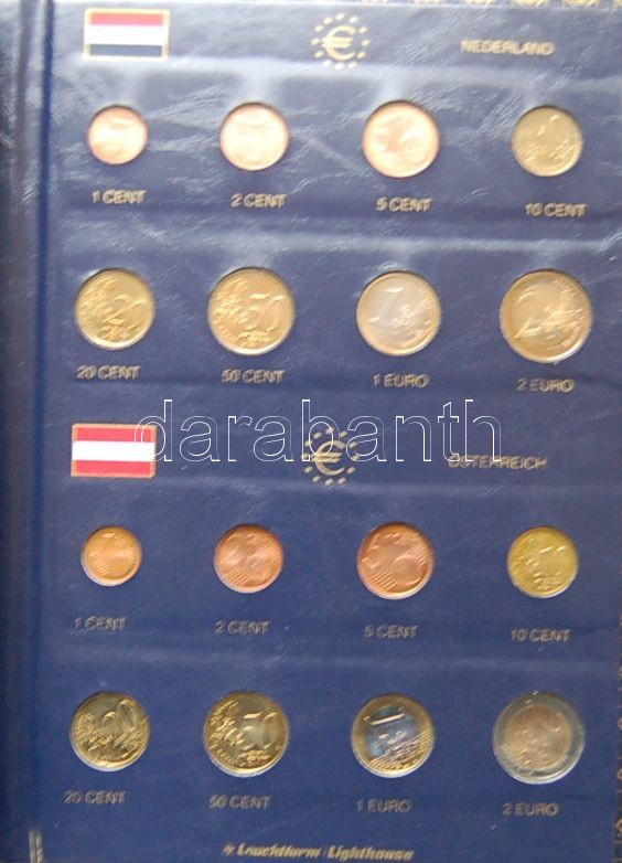 Az Európai Unió 12 alapító államát átölelő euró gyűjtemény 96db klf (1c-2€) érmével, eredeti előnyomott Leuchtturm albumban, hiánytalanul! T:BU,1