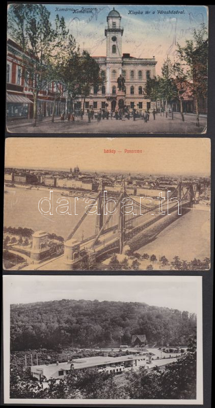 10 db régi magyar városképes lap, köztük egy révkomáromi és egy kőrösm...