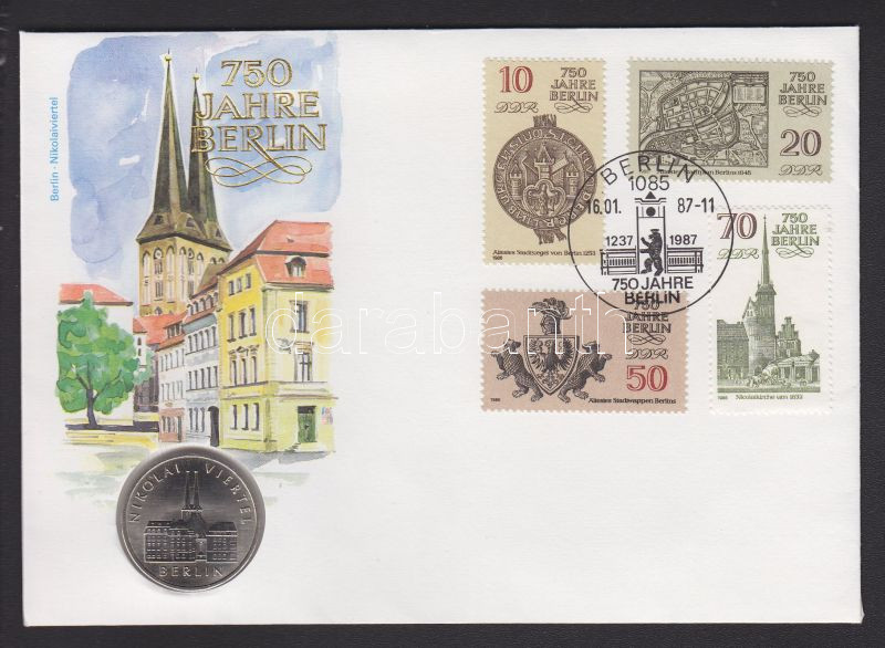 NSZK 1987. 5M "750 éves Berlin" érmés borítékon elsőnapi bélyegzős bél...