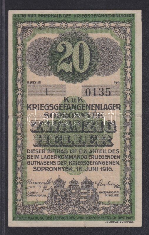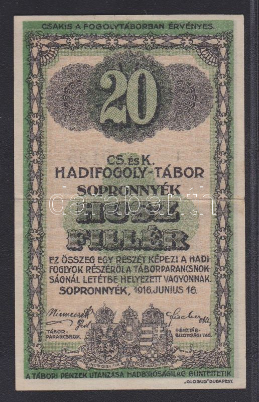 https://www.darabanth.com/en/130-Online-auction/130.0/Numismatics/~873/Sopronnyek-1916-20f-Cs-es-K-hadifogoly-tabor-leteti-vagyonjegy-TII-~II369165