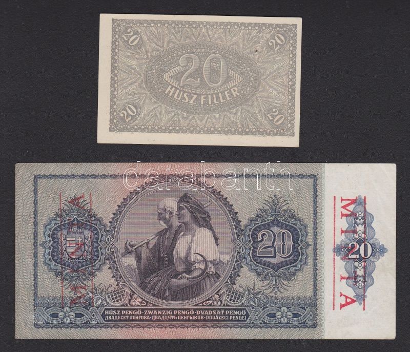 https://www.darabanth.com/en/130-Online-auction/130.0/Numismatics/~875/1920-20f-TI-felfele-csuszott-nyomassal-plus-1941-20P-hamis-minta-felulbelyegzessel-TII~II370498