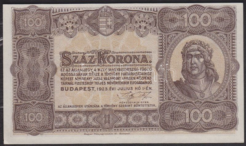1923. 100K felfelé csúszott előlapi nyomat T:I