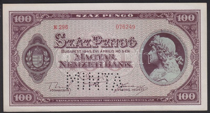 1945. 100P "MINTA" perforációval, sorszámozott T:I