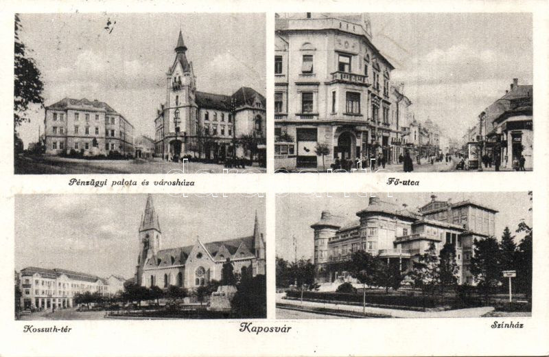 Kaposvár Pénzügyi palotával és a Kossuth térrel