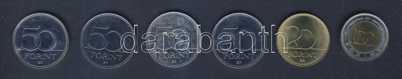2002-2007. 20Ft "Deák" (1x) + 100Ft "Kossuth" (1x) + 50Ft (4x) klf mot...