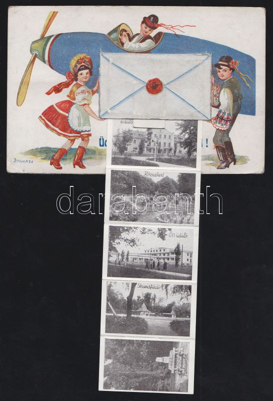 Harkányfürdő vasutas házzal és a MÁV Rudolf-üdülővel leporellocard s: Bernáth