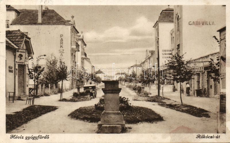 Hévíz Gyógyfürdő Rákóczi út a Park Szállodával, a Gabi Villával és a Herceg Esterházy hentesüzlettel