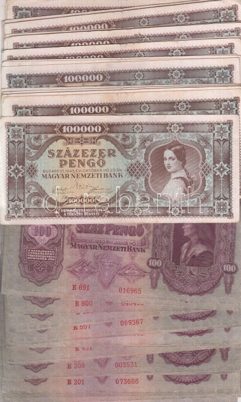 1930. 100P (25x) + 1945. 100000P (25x) klf színváltozatok is T:II,III,...