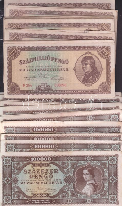 https://www.darabanth.com/en/133-Online-auction/133.0/Numismatics/Austro-Hungarian-and-Hungarian-Banknotes~400129/1945-100000P-25x-tobbfele-szinvaltozat-plus-1946-100000000P-25x-TII-III~II382213