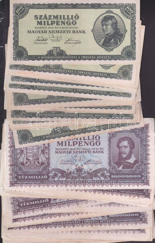 1946. 10000000MP (25x) többféle színváltozat + 1946. 100000000MP (25x) többféle színváltozat T:II,III