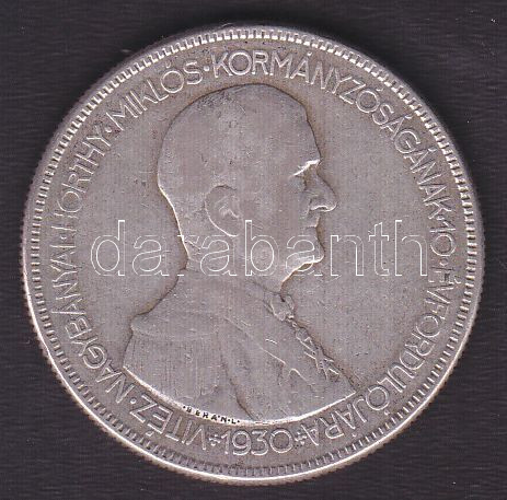 https://www.darabanth.com/en/133-Online-auction/133.0/Numismatics/Coins-with-Hungarian-Mintmark~400142/1930-5P-Ag-Horthy-jobbra-T3-apro-ph~II382331